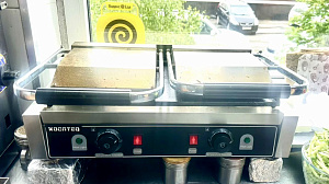 Гриль контактный двухсекционный настольный с тремя пластинами.