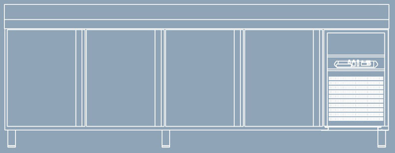 Экономическая серия сервисных холодильных столов для предприятий с ограниченным бюджетом. Столы имеют негастронормированные внутренние размеры.