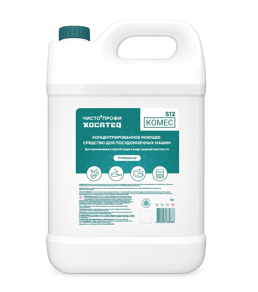 Средство моющее концентрированное Kocateq S12KOMEC объемом 5 л, для воды мягкой и средней жесткости, для посудомоечных машин