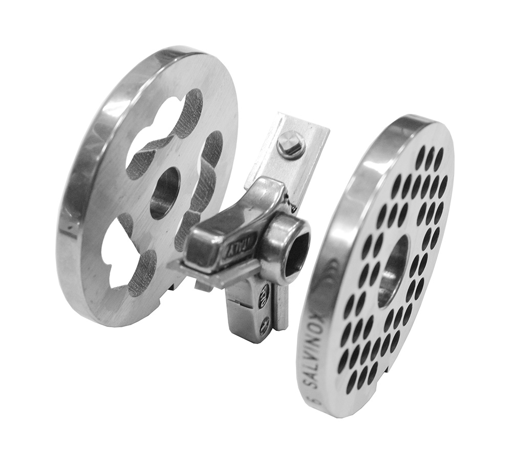 Мясорубка электромеханическая с системой Half Unger (2 решетки (0 мм + 6 мм) и 1 нож).