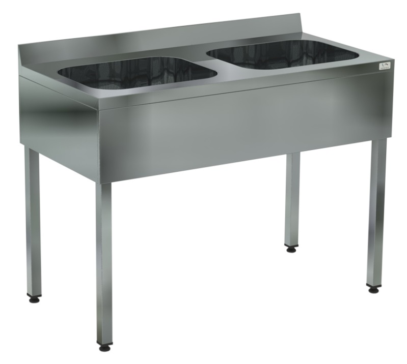 Ванна моечная пристенная двухсекционная открытая с цельнотянутой емкостью размером 50*50*30 см.