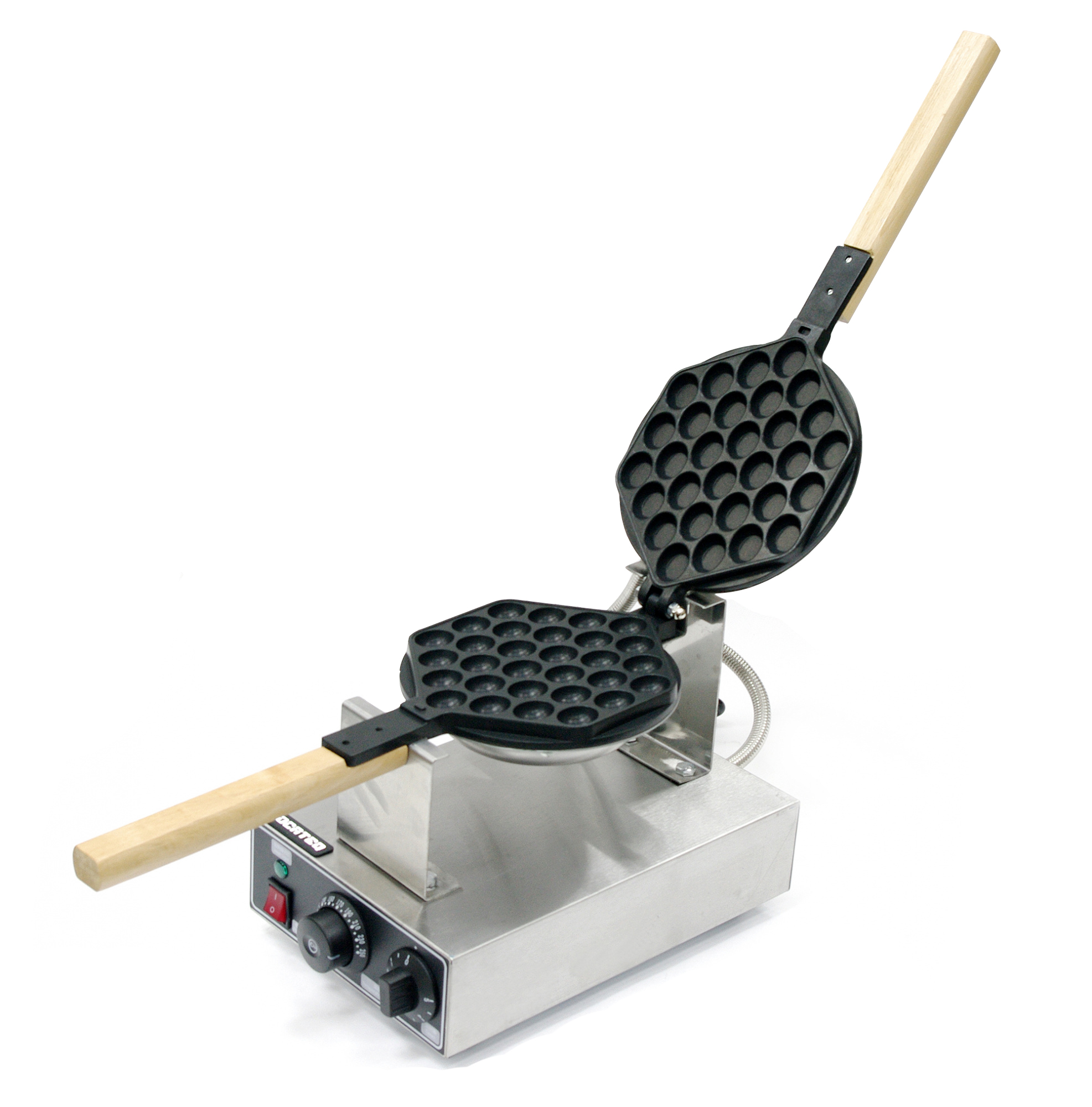 Устройство для выпекания вафель. Нагрев производится посредством электрического тока, поэтому они могут также называться электровафельницами. Состоит из двух жарочных плит, соединенных шарнирно. Нагрев рабочих поверхностей прибора осуществляется за счет трубчатых электронагревательных элементов.