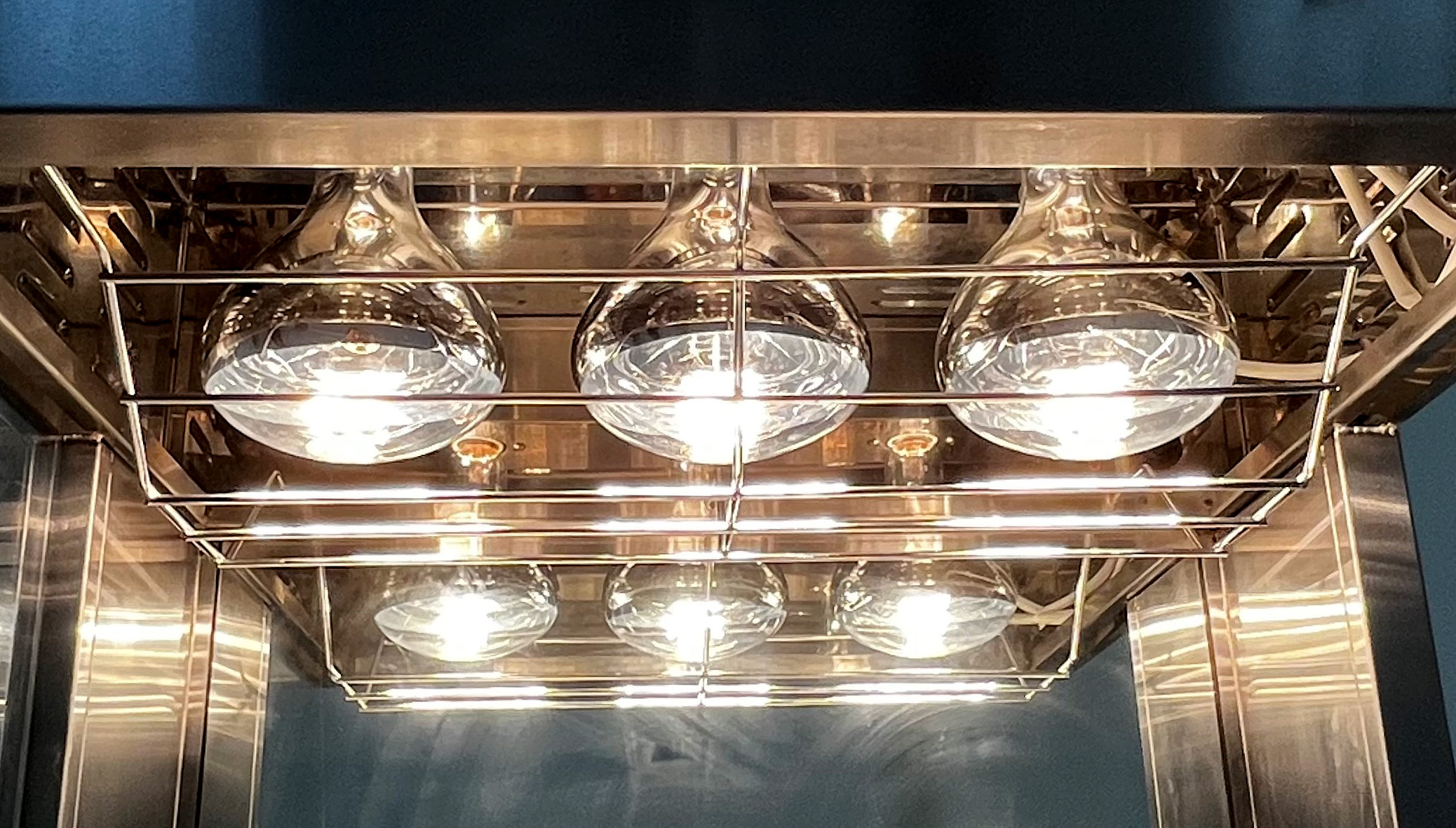 Нагрев продуктов с помощью 4 ИК-лампы мощностью 275 Вт каждая, расположенных в верхней части витрины.