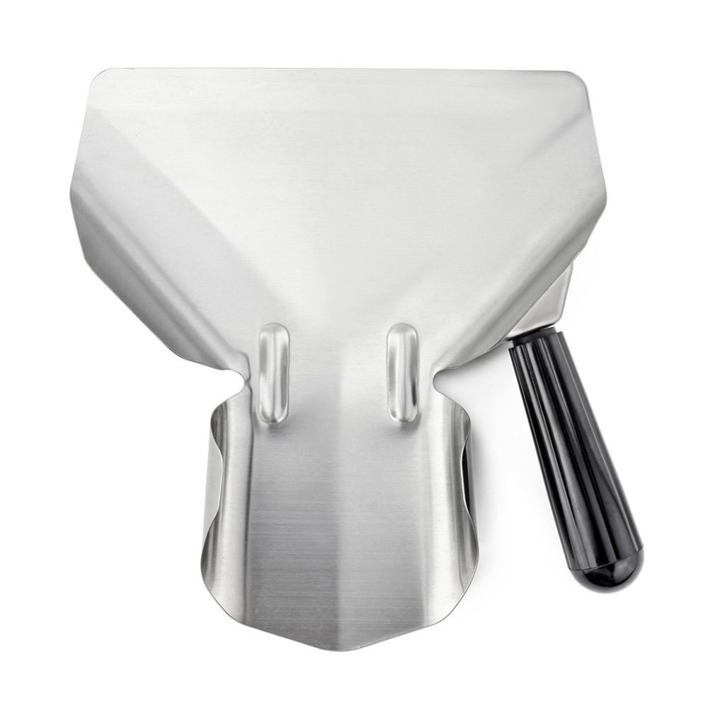 Солонка из нержавеющей стали и профессиональный совок для фасовки чипсов под правую руку в комплекте поставки.