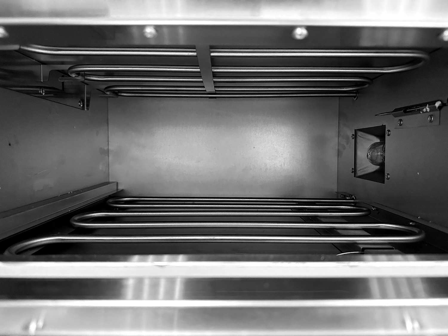 Аналоговая панель управления: механический термостат верхних и нижних ТЭНов от 50 до 350 градусов Цельсия, таймер до 60 мин, кнопка включения, кнопка подсветки.