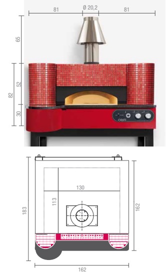 Вместимость до 12 пицц диаметром 30 см (производительность до 140 шт/ч), до 9 пицц диаметром 35 см (производительность до 100 шт./ч), до 5 пицц диаметром 45 см (производительность до 45 шт/ч), до 5 пицц 60*40 см (производительность до 25 шт/ч).
