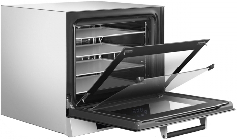 Конвектомат электрический с 4 уровнями для противней 435*320 мм с пароувлажнением, с пошаговым программированием и регулировкой скорости вентилятора.