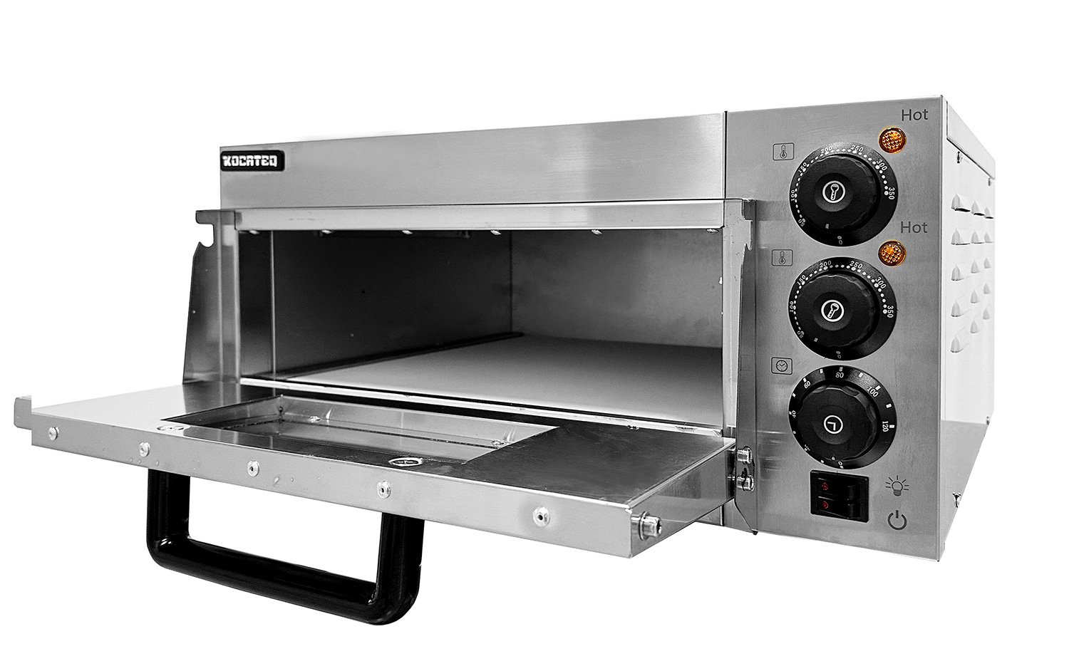 Аналоговая панель управления: механический термостат верхних и нижних ТЭНов от 50 до 350 градусо Цельсия, таймер до 60 мин, кнопка включения, кнопка подсветки.