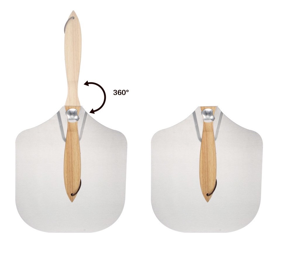 Лопата для пиццы из алюминия прямоугольная с поворотной деревянной ручкой.