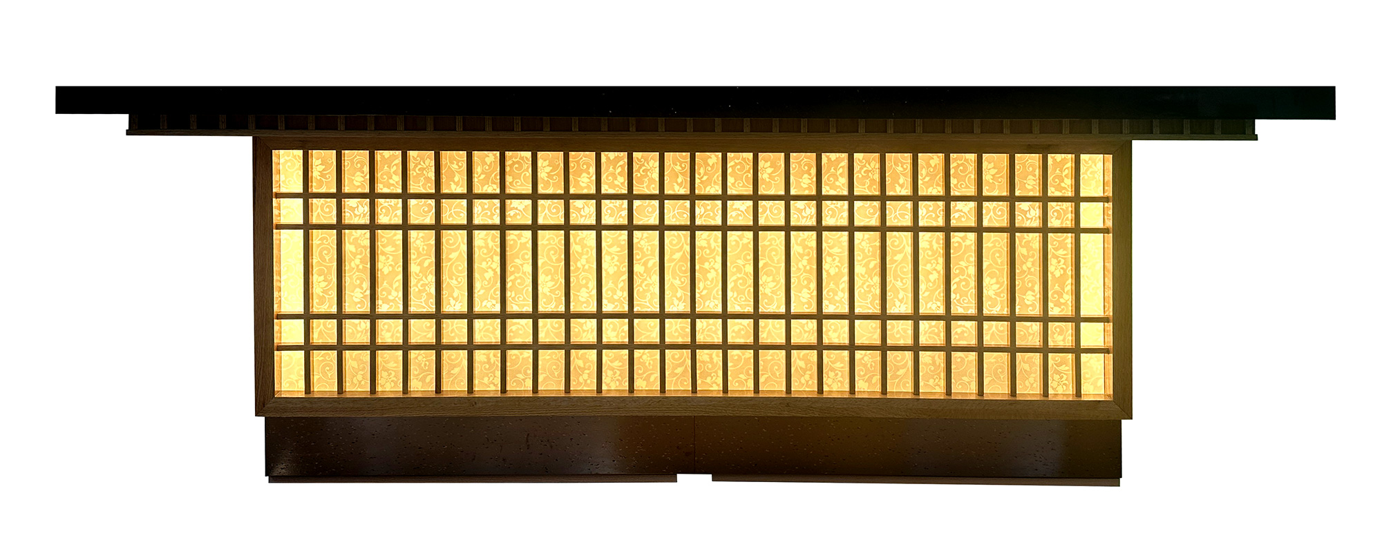 Основание тепана декорировано узором из натурального дерева с подсветкой.