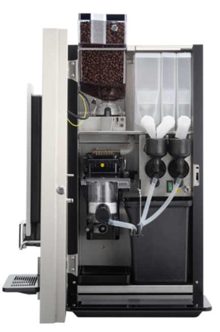 Дополнительно: датчик наличия чашки; совместимость с различными системами оплаты; горячие и холодные напитки из одной машины (блок охлаждения устанавливается в нижнем шкафчике); вариант Decafe (контейнер для кофе заменяется на два раздельных контейнера для свежемолотого кофе и кофе без кофеина); передняя панель черного, белого цвета или цветная из палитры RAL) (стандартный вариант исполнения - нержавеющая сталь).