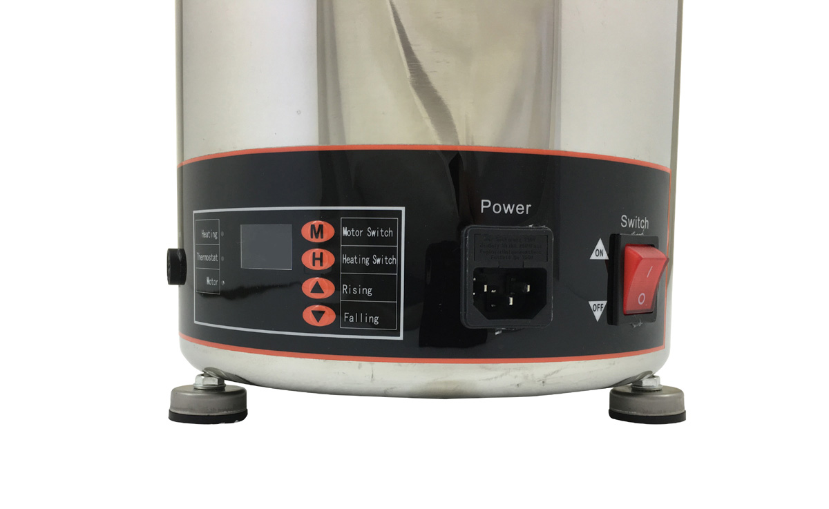 Электронная панель управления: кнопка включения мотора, кнопка включения нагрева, регулятор температуры (термостат от 30 до 110 оС).