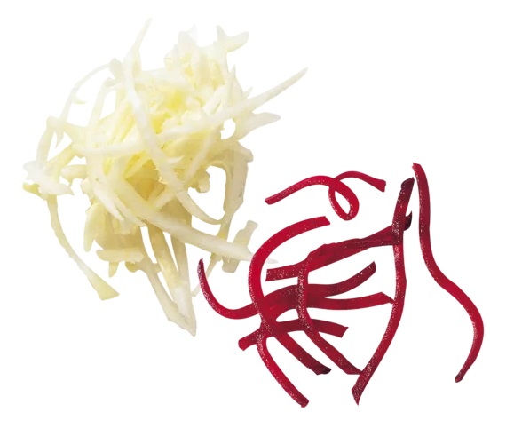 Покрытие снижает трение на поверхности диска, обеспечивает высокую точность нарезки и сохраняет свежесть фруктов и овощей.