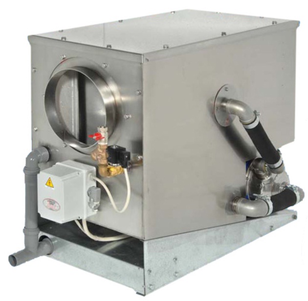 Установка гидрофильтра обеспечивает достаточную естественную вентиляцию для дровяных печей, что достигается эффектом Venturi, производимого посредством давления внутри водяных форсунок.