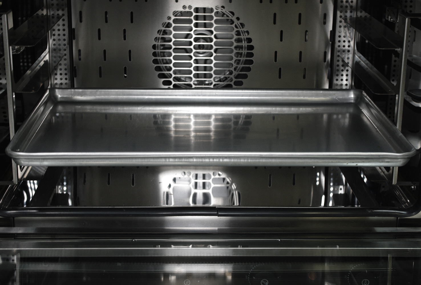 Циркуляция потока воздуха во внутреннем объеме печи обеспечивается одним вентилятором.