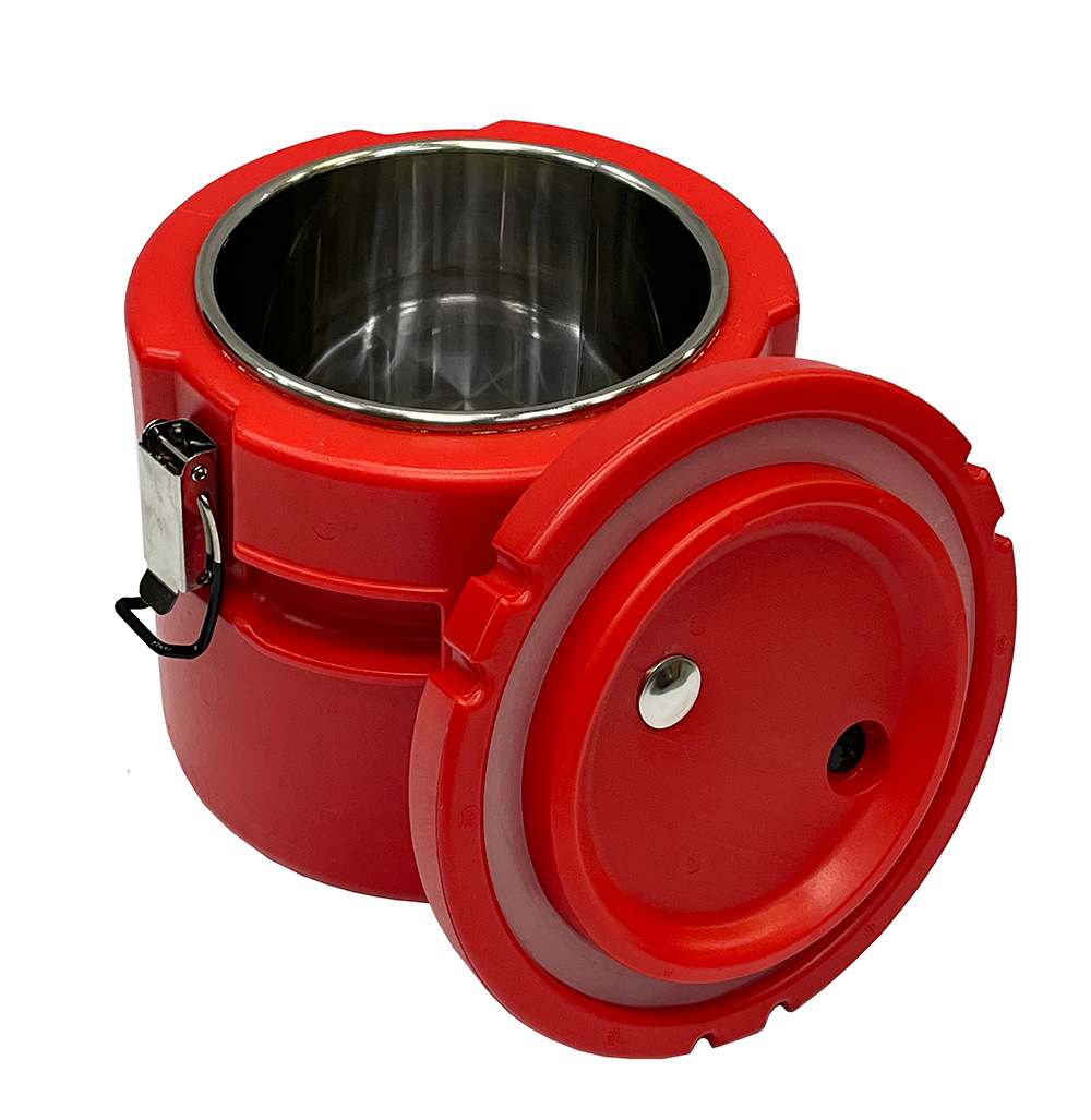 Термоконтейнер цилиндрический с верхней загрузкой с максимальным рабочим объемом 4 л из цельнолитой двухслойной конструкции с инжекцией из пенополиуретана высокой плотности.
