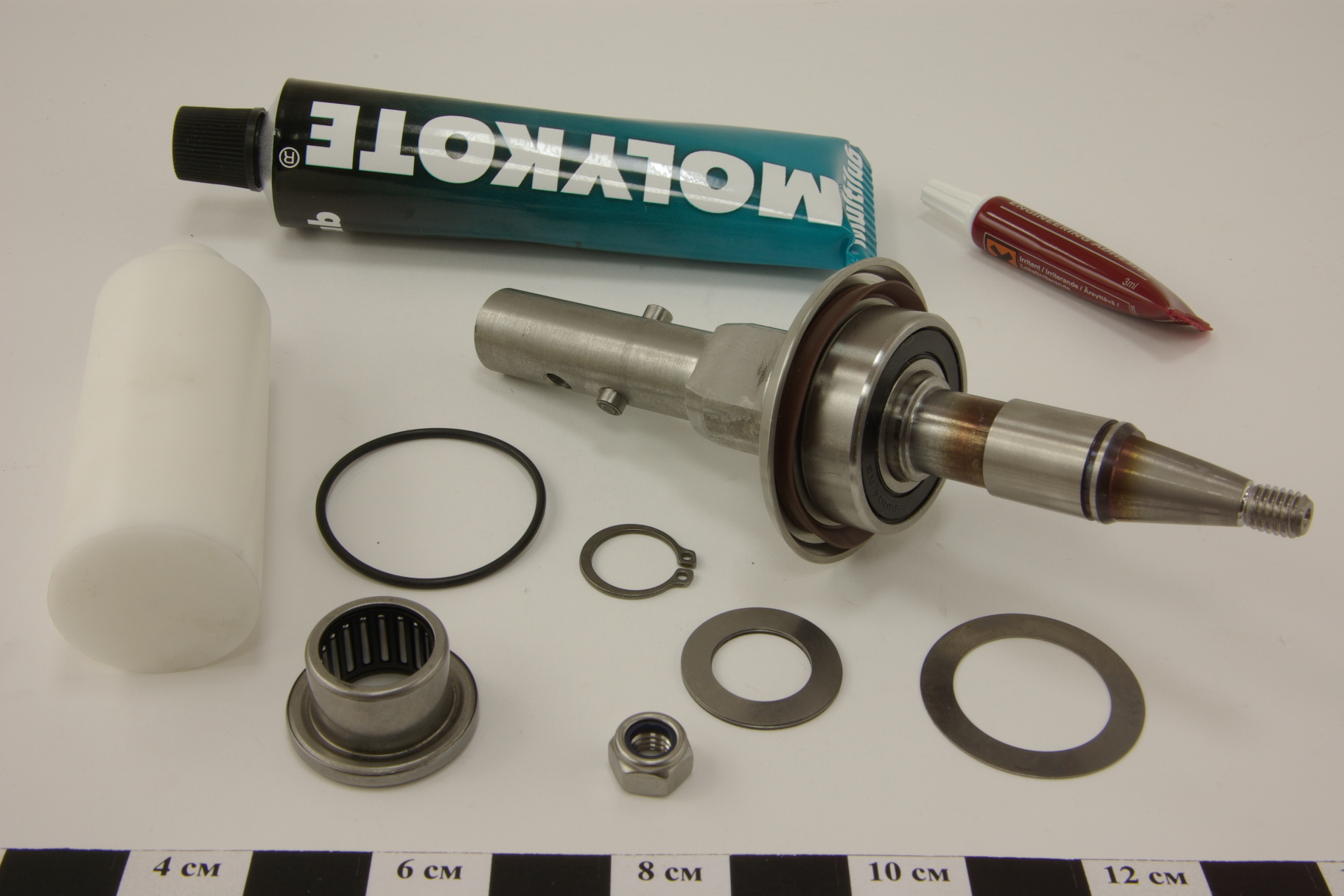 Вал с подшипниками в сборе для овощерезок CL52D/CL55, вал-длинна 175мм, подшипник качения 6004RS, подшипник игольчатый RAX718, кольцо стопорное 20мм, шайба 29мм, шайба 28мм, кольцо уплотнительное, смазка