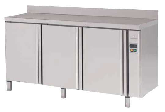 Столы рабочие с охлаждаемым внутренним объемом и сплошными дверями.