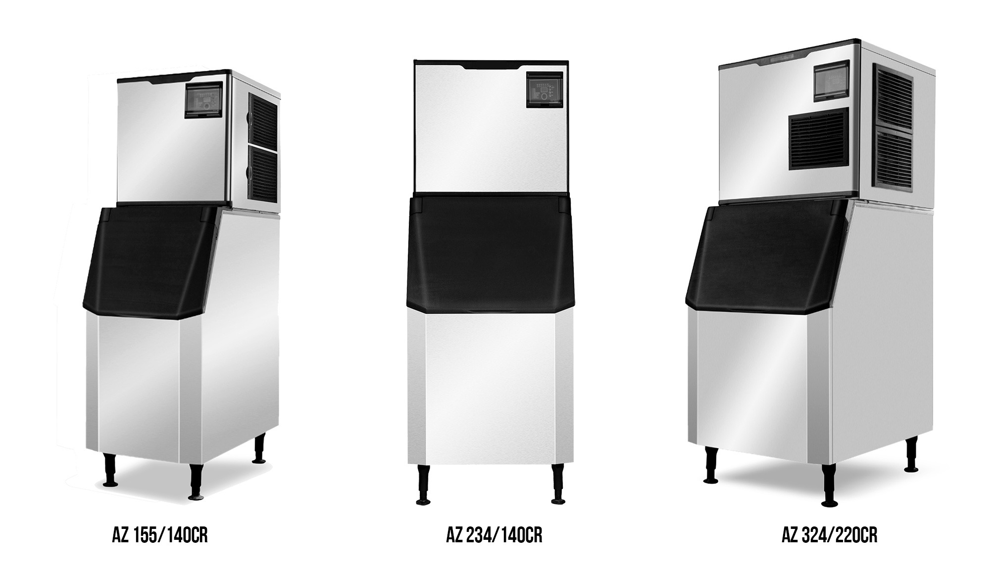 Льдогенератор Koreco AZ 155/140CR для льда формой полумесяц, 155 кг/сут, бункер 140 кг, с подключением к водопроводу
