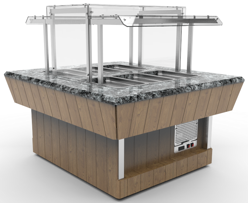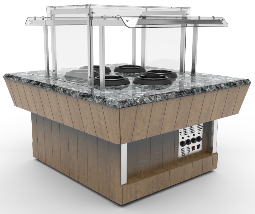 Оборудование для организации шведского стола, основное назначение которого -хранение, демонстрация, дистрибуция готовых горячих и холодных блюд ,выдаваемых официантом, либо вариант самообслуживания,отлично впишется в интерьер любого ресторана.