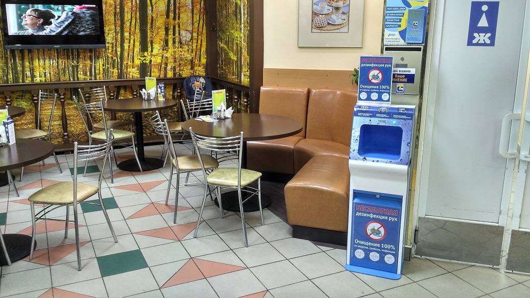 Резервуар автоматического санитайзера вмещает от 1 до 10 литров жидкого, негелевого и немыльного антисептика.