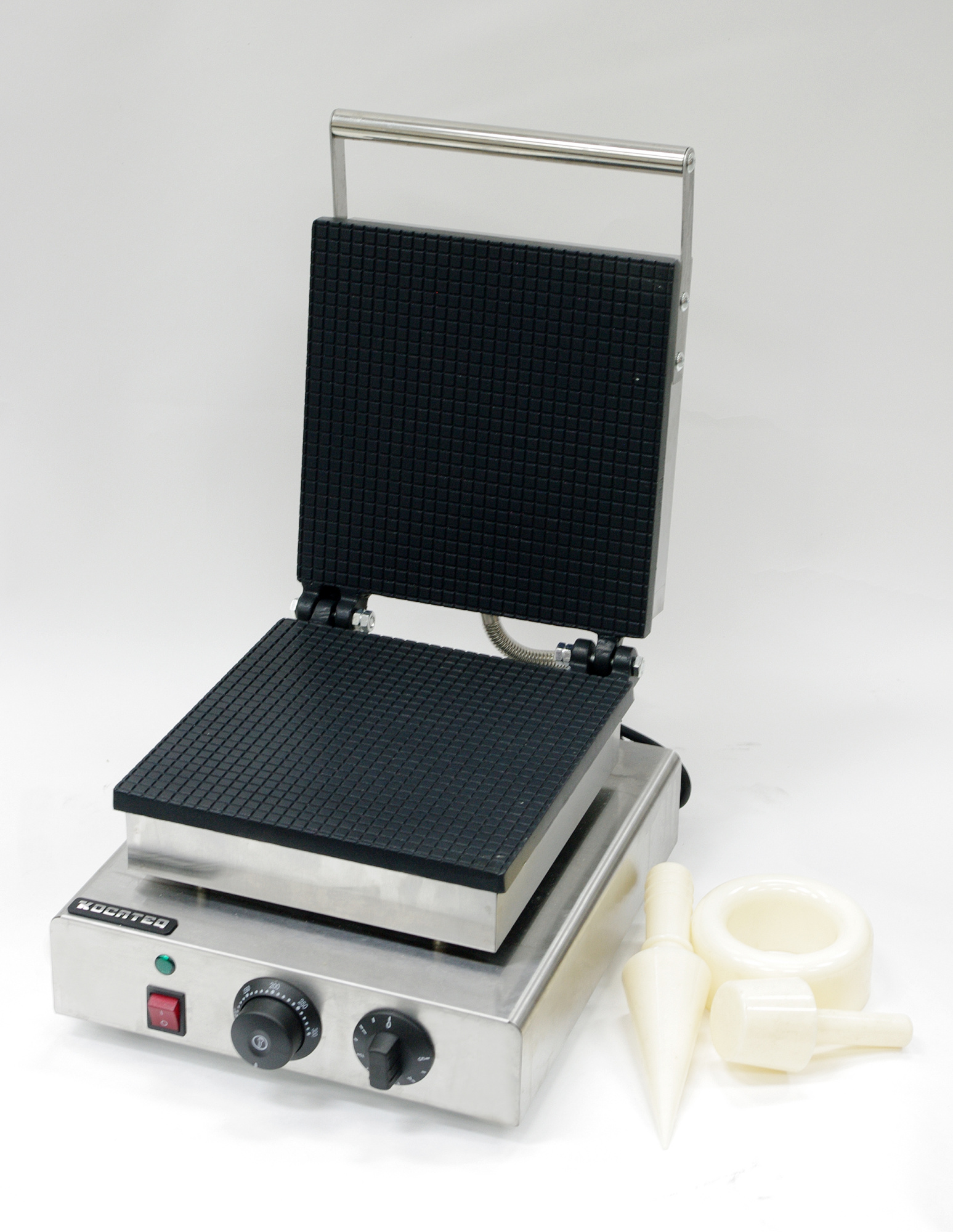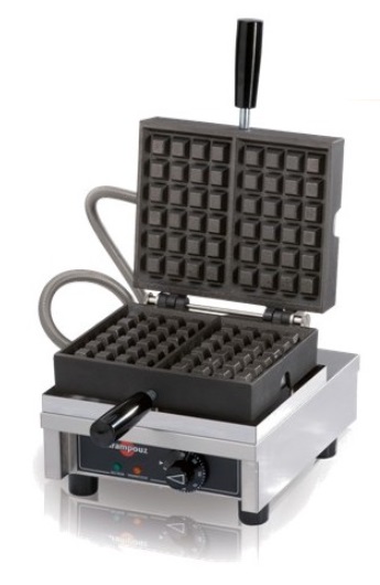 Устройство для выпекания вафель. Нагрев производится посредством электрического тока, поэтому они могут также называться электровафельницами. Состоит из двух жарочных плит, соединенных шарнирно. Нагрев рабочих поверхностей прибора осуществляется за счет трубчатых электронагревательных элементов.