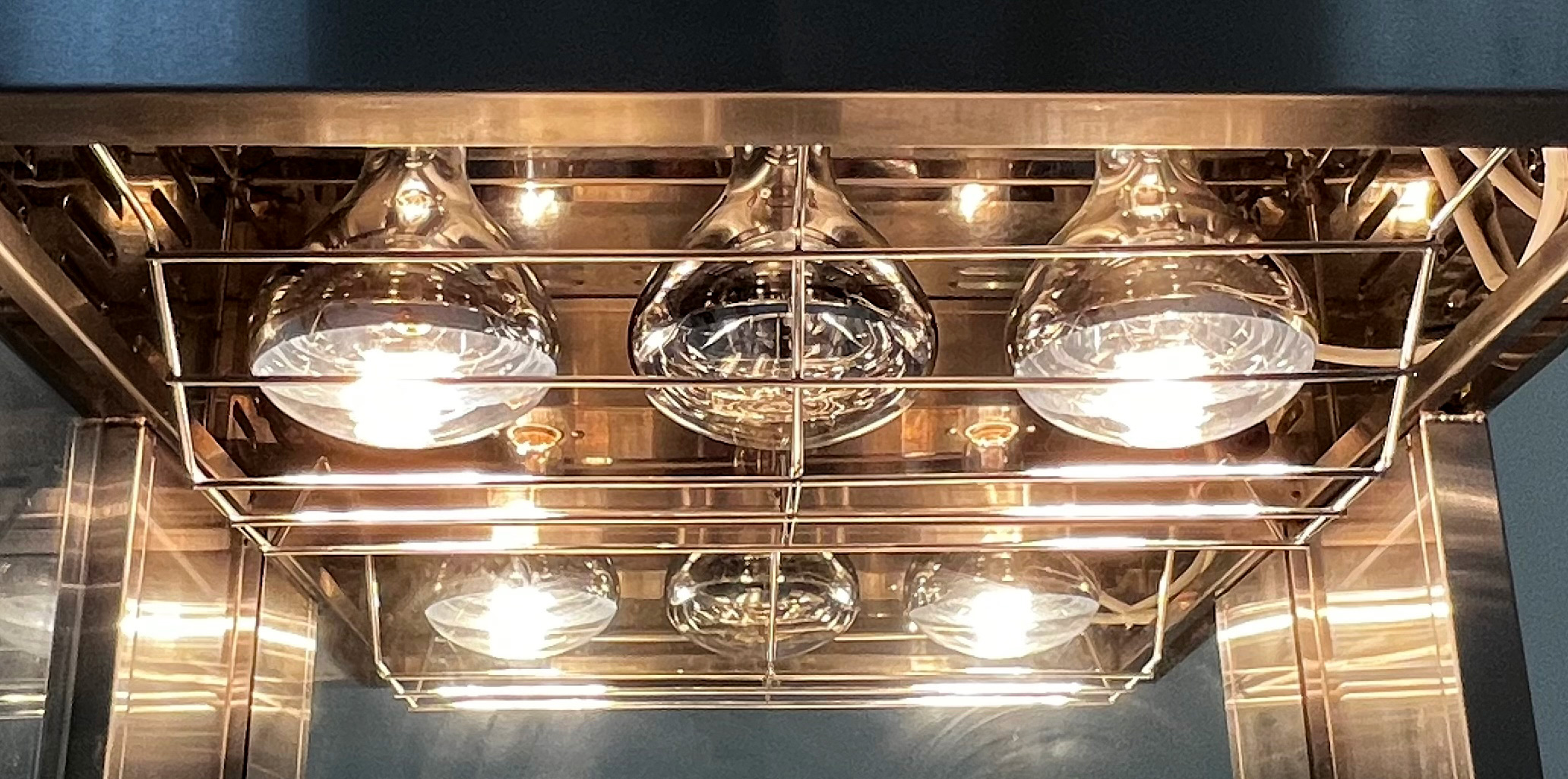 Большое зеркало в стенке мармита для распределения теплового потока по площади витрины.
