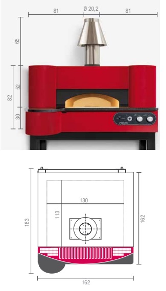 Вместимость до 12 пицц диаметром 30 см (производительность до 140 шт/ч), до 9 пицц диаметром 35 см (производительность до 100 шт./ч), до 5 пицц диаметром 45 см (производительность до 45 шт/ч), до 5 пицц 60*40 см (производительность до 25 шт/ч).