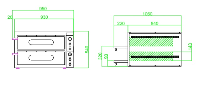 Вместимость 4+4 пиццы диаметром 35 см.