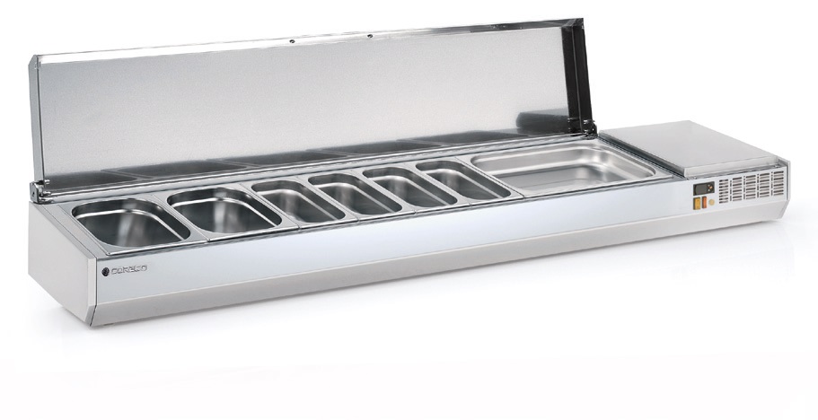 Холодильные витрины для ингредиентов служат для поддержания в охлажденном состояния составных частей топпинга (того, что помещается на тестовую заготовку) пиццы.
