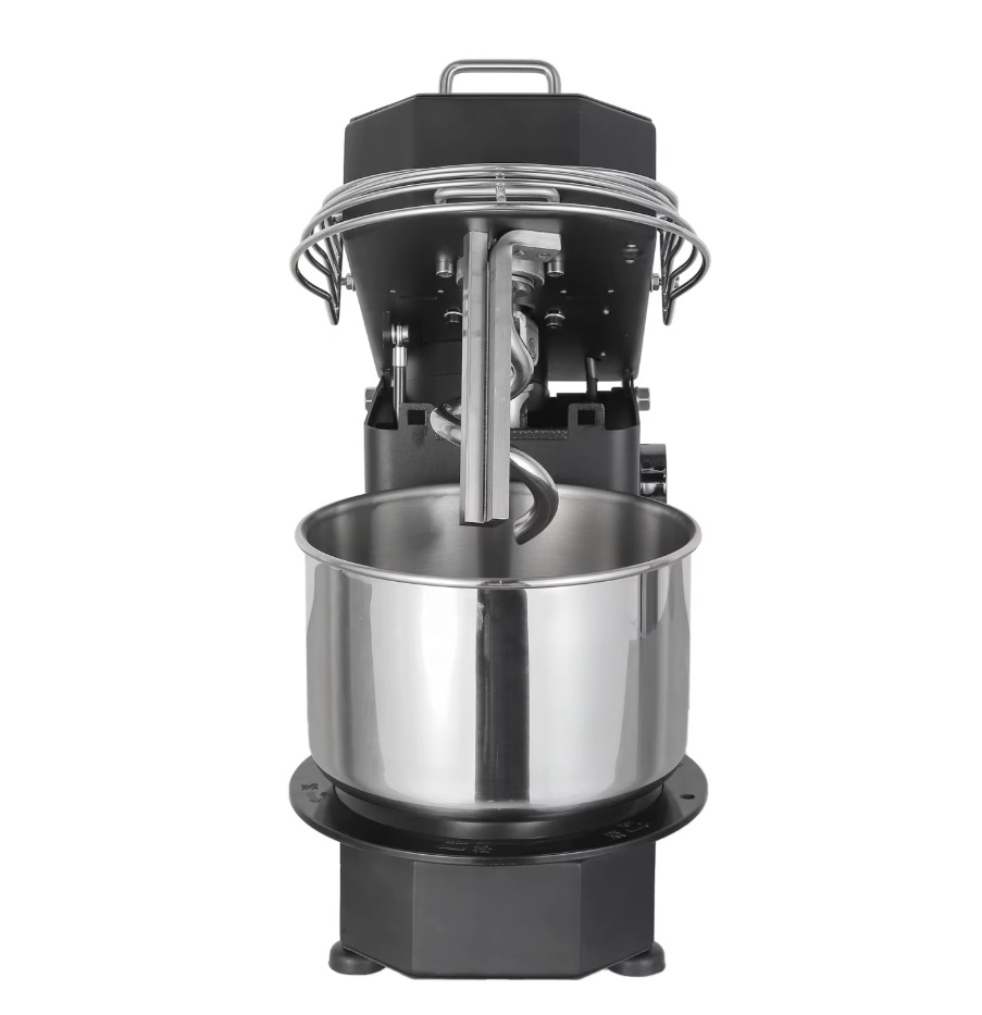 Тестомесильная машина со встроенным термометром, со съемной дежой объемом 7 л и с подъемным месильным органом.