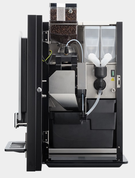 Дополнительно: датчик наличия чашки; совместимость с различными системами оплаты; горячие и холодные напитки из одной машины (блок охлаждения устанавливается в нижнем шкафчике); передняя панель черного, белого цвета или цветная из палитры RAL) (стандартный вариант исполнения - нержавеющая сталь).