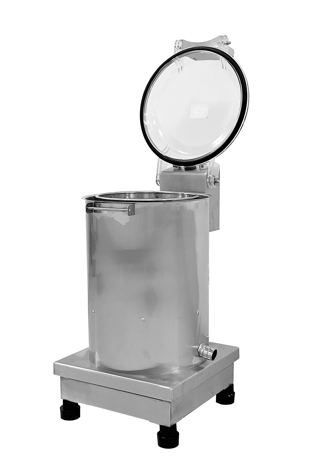 Лишняя вода выходит через трубку Ø35 мм, расположенную в нижней части центрифуги.
