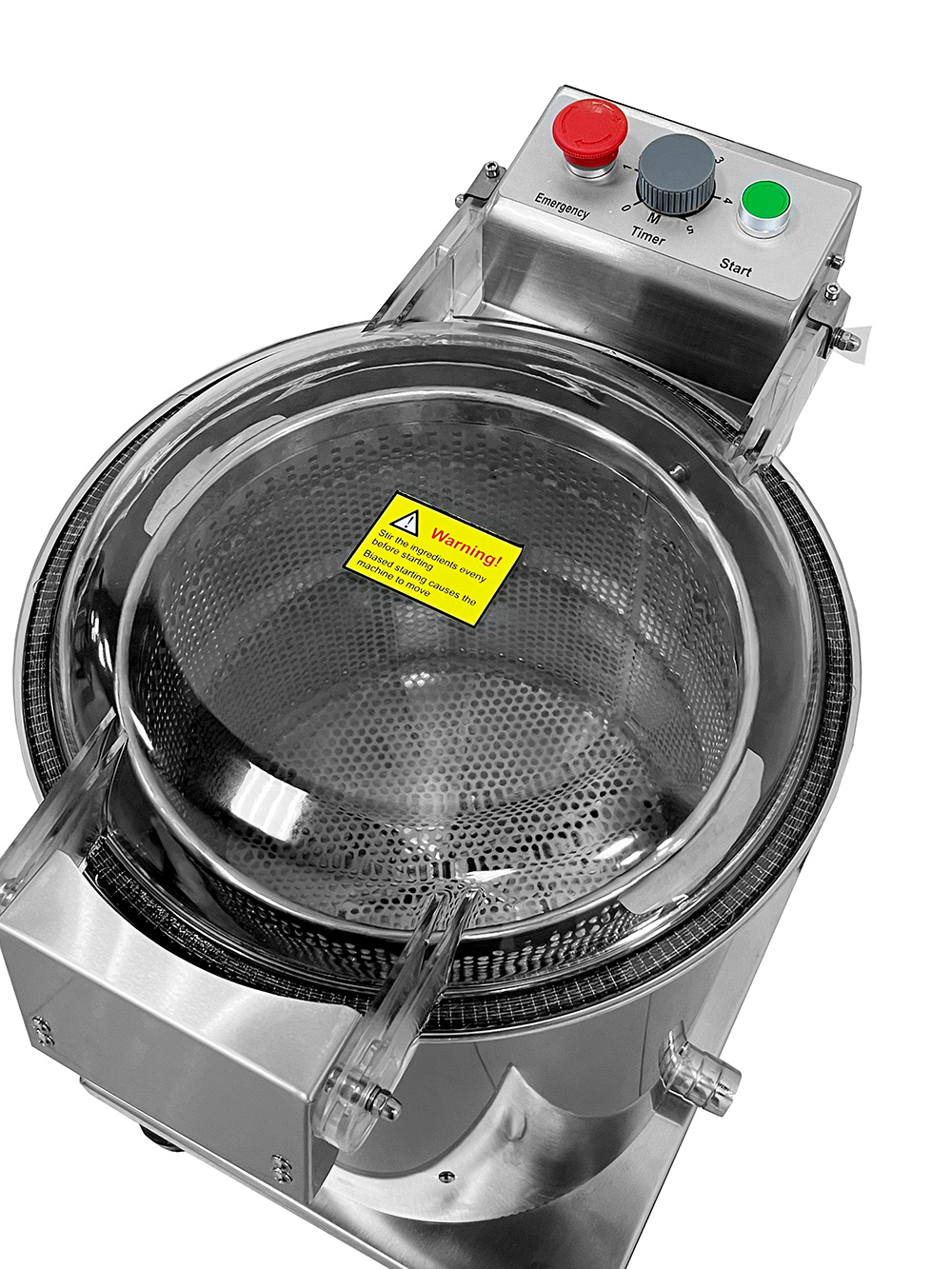 Механическая панель управления: кнопка включения, таймер до 5 мин, кнопка аварийной остановки.