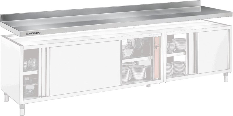 Столешница пристенная из нержавеющей стали AISI304 для установки на холодильные столы без верхней столешницы с дверцами или ящиками.