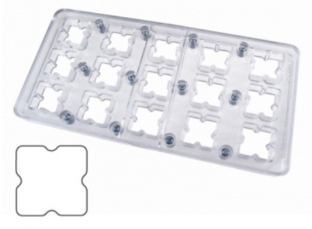 Форма из поликарбоната "квадрат" для корпусных конфет с магнитной защелкой для фиксирования пленки с переводным изображением.