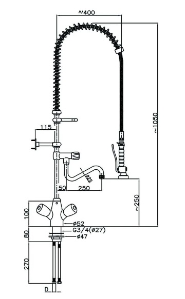 Устанавливается на моечную ванну или на стол-мойку (в отверстие диаметром 28 мм) для разбора и предварительного ополаскивания посуды перед её загрузкой в посудомоечную машину.