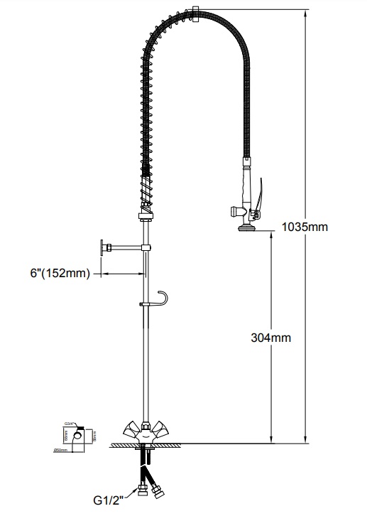 Устанавливается на моечную ванну или на стол-мойку для разбора и предварительного ополаскивания посуды перед ее загрузкой в посудомоечную машину.