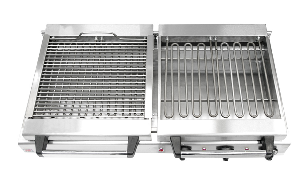 Гриль-мангал электрический двухсекционный с прутковой решеткой из нержавеющей стали размером 41*34 см.