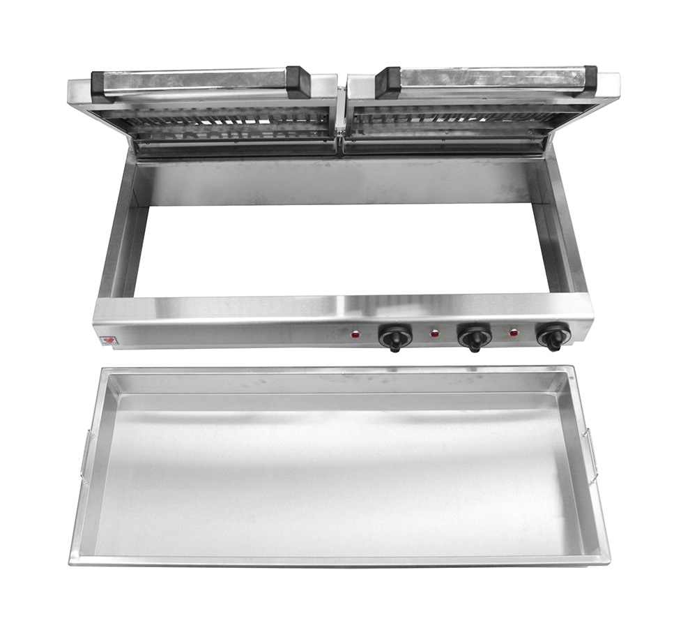 Для предотвращения иссушивания обжариваемого продукта, непосредственно под нагревательными элементами, располагается емкость из нержавеющей стали, в которую наливается вода.