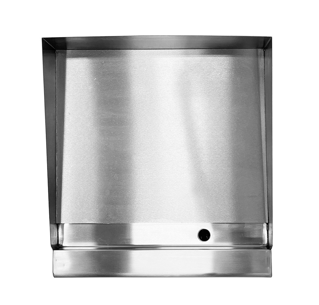 Поверхность, с трех сторон окруженная брызгозащитным экраном, имеет уклон к фронту и отверстие для стока излишков жиров, соков, выделяющихся в процессе приготовления.