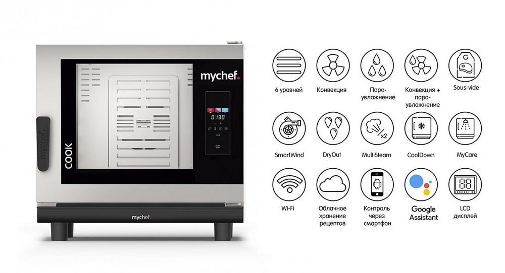 Пароконвектомат Distform MyChef Cook Pro 6 GN 1/1 right opening (CCE6100D) электрический 6 ур. GN1/1, без WiFi, автоматическая мойка