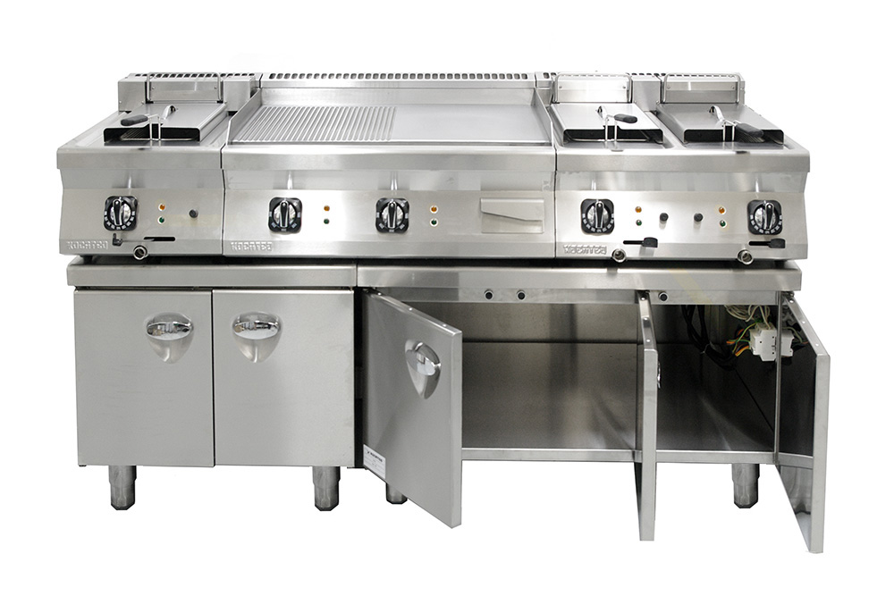 Особенности модели: итальянский дизайн, 3 распашные двери с хромированными ручками, полностью выполненная электрическая разводка (клеммная коробка, автоматические выключатели, кабели, 3 розетки) розетки утоплены в специальной нише и позволяют устанавливать функциональные элементы заподлицо с задней стенкой; - регулируемые по высоте ножки в комплекте поставки.
