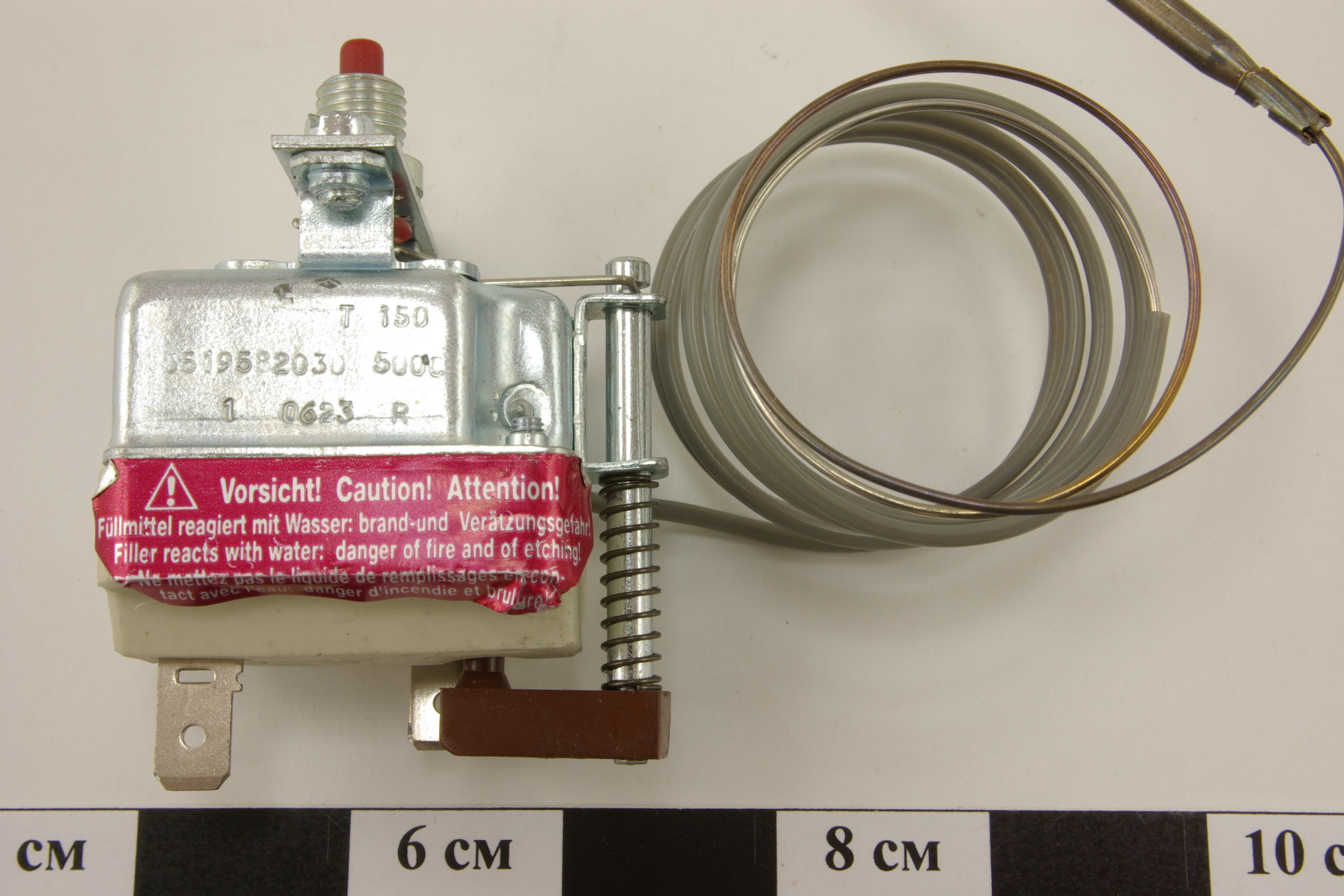 Термостат защитный (кнопка) однофазный, температура срабатывания 512°C, длина капиллярной трубки 960мм, термобаллон ø4x228мм, код EGO 55.19582.030