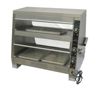 Верхний ярус снабжен только верхним кварцевым нагревательным элементом. Нижний ярус витрин снабжен как верхним нагревательным элементом, так и системой