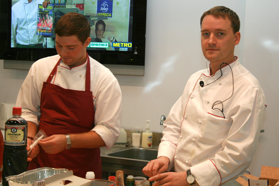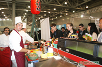 Наиболее интересными для посетителей стали мастер-классы специалистов тайской королевской кухни - Ильи Усова и Андрея Бурденкова. Они продемонстрировали возможности индукционной WOK плиты Zlic 3500, которая позиционировалась, как самая быстрая плита на выставке (приготовление блюд занимало от 3 до 5 минут).