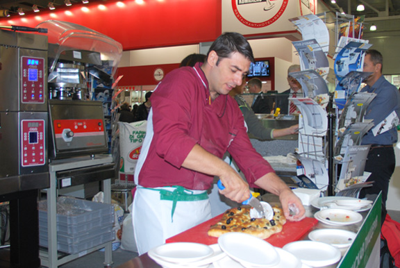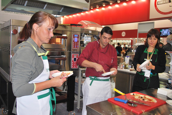 Доцент Института Pizza System компании ALI-OEM S.p.A. , мирового лидера в области производства оборудования для пиццерий, Роберто Ди Масса продемонстрировал весь цикл приготовления пиццы с использованием новейшего оборудования, включая и новую подовую печь OPTYMO (OEM) . Технология Pizza System позволяет открыть пиццерию в любом ценовом диапазоне с гарантированно постоянным качеством готового продукта.