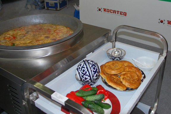 «Гвоздем» масштабной программы мастер-классов стал новый напольный электрический казан ZH6L от Kocateq, в котором были приготовлены настоящий узбекский плов , шурпа и венгерский гуляш. Новая модель позволяет полностью контролировать процесс приготовления. Для этих целей казан снабжен термостатом и регулятором уровня мощности. Наличие регулятора мощности позволяет использовать режим медленного приготовления, контролировать процессы тушения и исключает подгорание продуктов. Казан отлично впишется в формат любой этно кухни, послужит отличным якорным оборудованием для организации открытой кухни бюджетного формата. Заключенные на выставке «ПИР» контракты на поставки казанов сетевым ресторанам восточной кухни указывают на востребованость такого оборудования.
