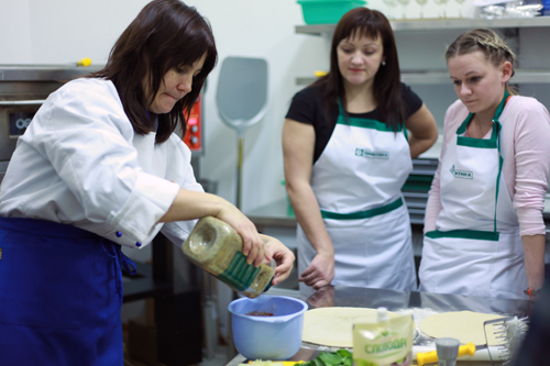 На семинаре об оборудовании мы не только рассказали в теории, но и продемонстрировали его работу на практике. Корпоративный шеф-повар компании Артур Грачёв приготовил для дилеров много всего интересного: пасту под соусом "Песто", овощи гриль, смуси, ягодные десерты со взбитыми сливками, наггетсы и картофель фри. А технолог компании Наталья Миронова провела мастер-класс по технологии приготовления итальянской пиццы. Дилеры cмогли активно поучаствовать в процессе всех TEST - COOKов .