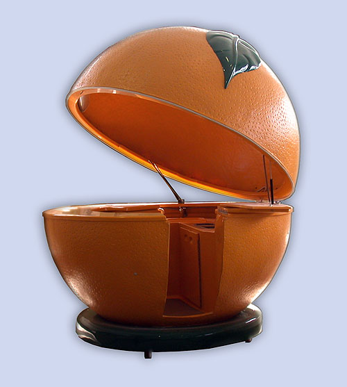 Поверхность стекловолокна из которого изготовлен Zuсo Mobil повторяет фактуру апельсиновой кожуры. В киоск